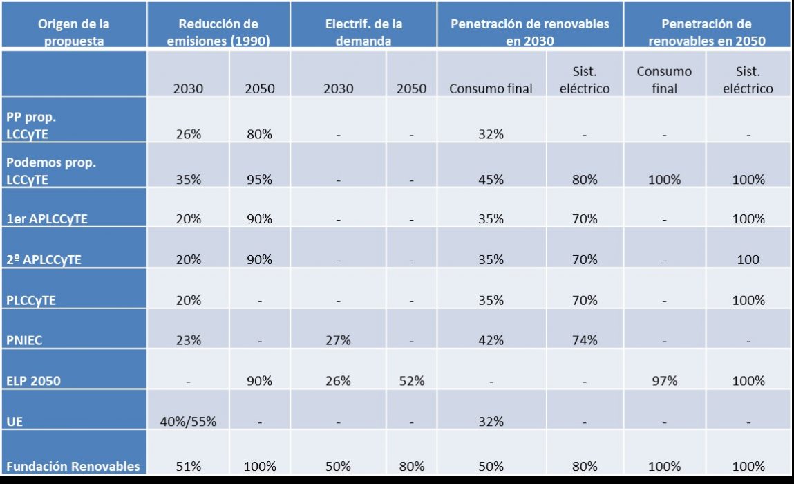 Desde la Fundación Renovables consideramos que los objetivos contenidos en el PLCCyTE no son suficientemente exigentes ni ambiciosos tanto por el déficit histórico que llevamos con respecto a los compromisos adquiridos, lo que supone aceptar que hemos perdido ya una década al asumir como objetivo para 2030 el que la UE tiene para 2020, como por no aprovechar el cambio tecnológico disponible.
